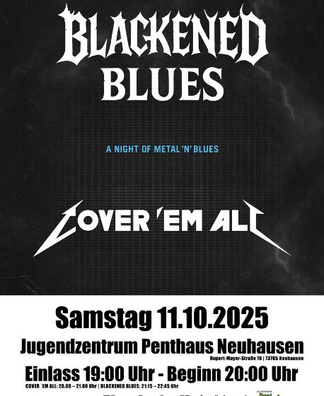 Die erfahrene Band "Blackened Blues" gibt ihre Visitenkarte im Jugendhaus ab. Mit der seit knapp 1 Jahr neu gegründeten jungen Band "Cover 'em all" als Vorgruppe ist das Generationenübergreifende Programm perfekt.